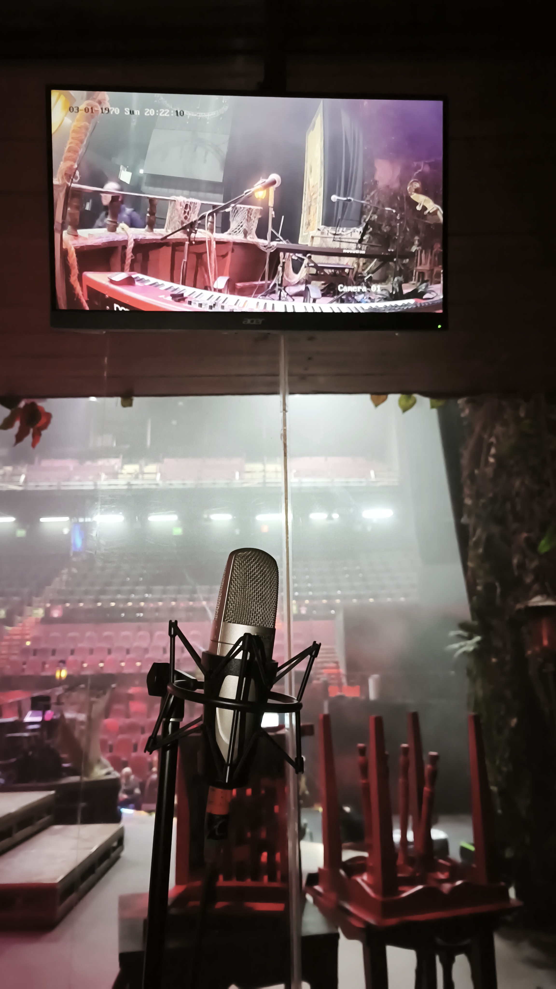 “El escenario en el que se desarrolla la historia incluye elementos escenográficos que hacen de Malinche un show único. Sin embargo, algunos de estos, podrían traer complicaciones para el personal de Microfonía y RF . Entre ellos destacan una pantalla de 300 m² al fondo, que genera interferencia en sí, y un par de albercas en las que ocurren escenas con talento microfoneado dentro de ellas, entre otros elementos”.